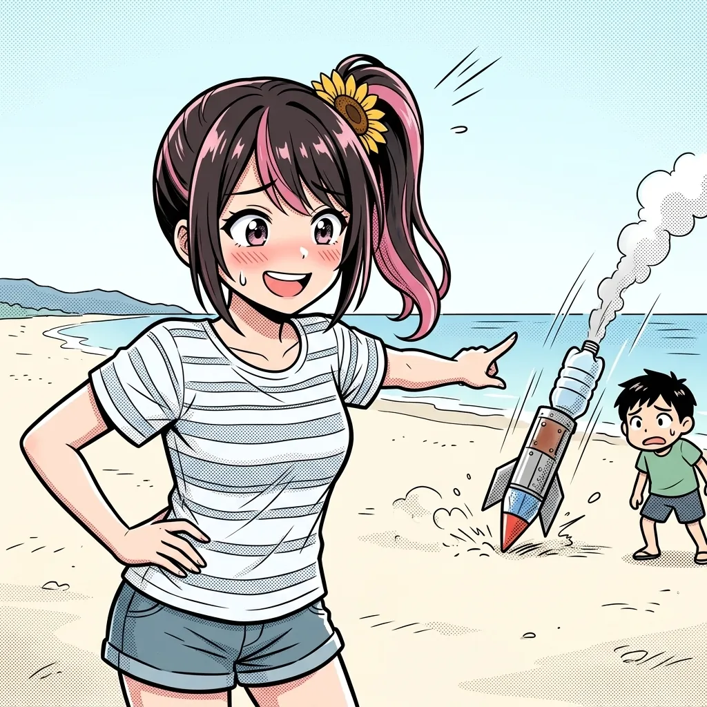 ハチマキくんとタナベさんの海辺のシーン、めちゃくちゃ良い雰囲気だったのに!「おっ、ついに進展か!?」って身を乗り出した瞬間に、九太郎くんのロケットが墜落してきて全部持っていくとか……っ!あの空気のぶち壊され方、もう爆笑するしかなかったよね(笑)。あんなにロマンチックなはずの空気が一瞬で「おいおい!」ってなるの、二人らしくて最高だよっ!