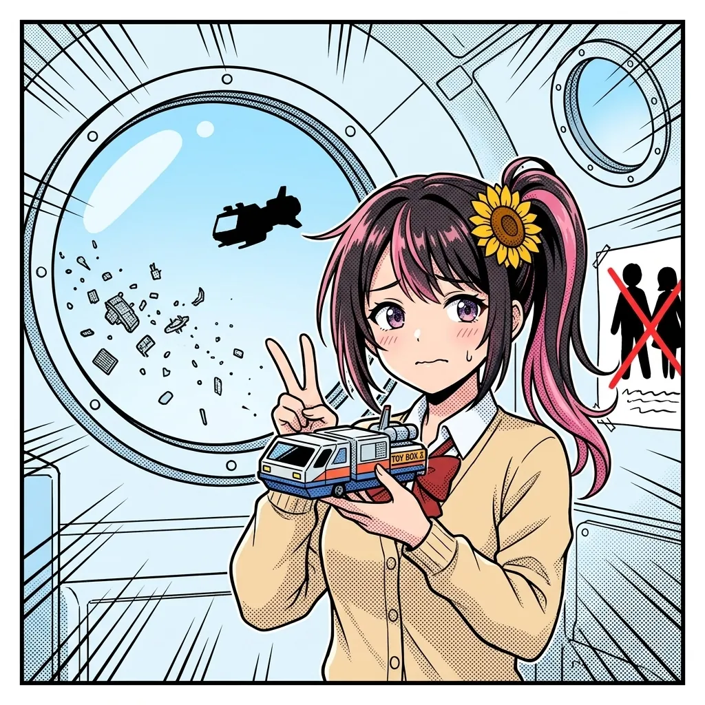 新しい船、トイボックス2がついに登場したね!見た目からして強そうだし、デブリ回収の効率も爆上がりしそうっ!……と思いきや、会社からの通達が「社内恋愛禁止」って、タイミング悪すぎない!?(笑)ハチマキくんとタナベちゃんの二人が、そんな理不尽な規則を突きつけられて黙ってるわけないよね。
