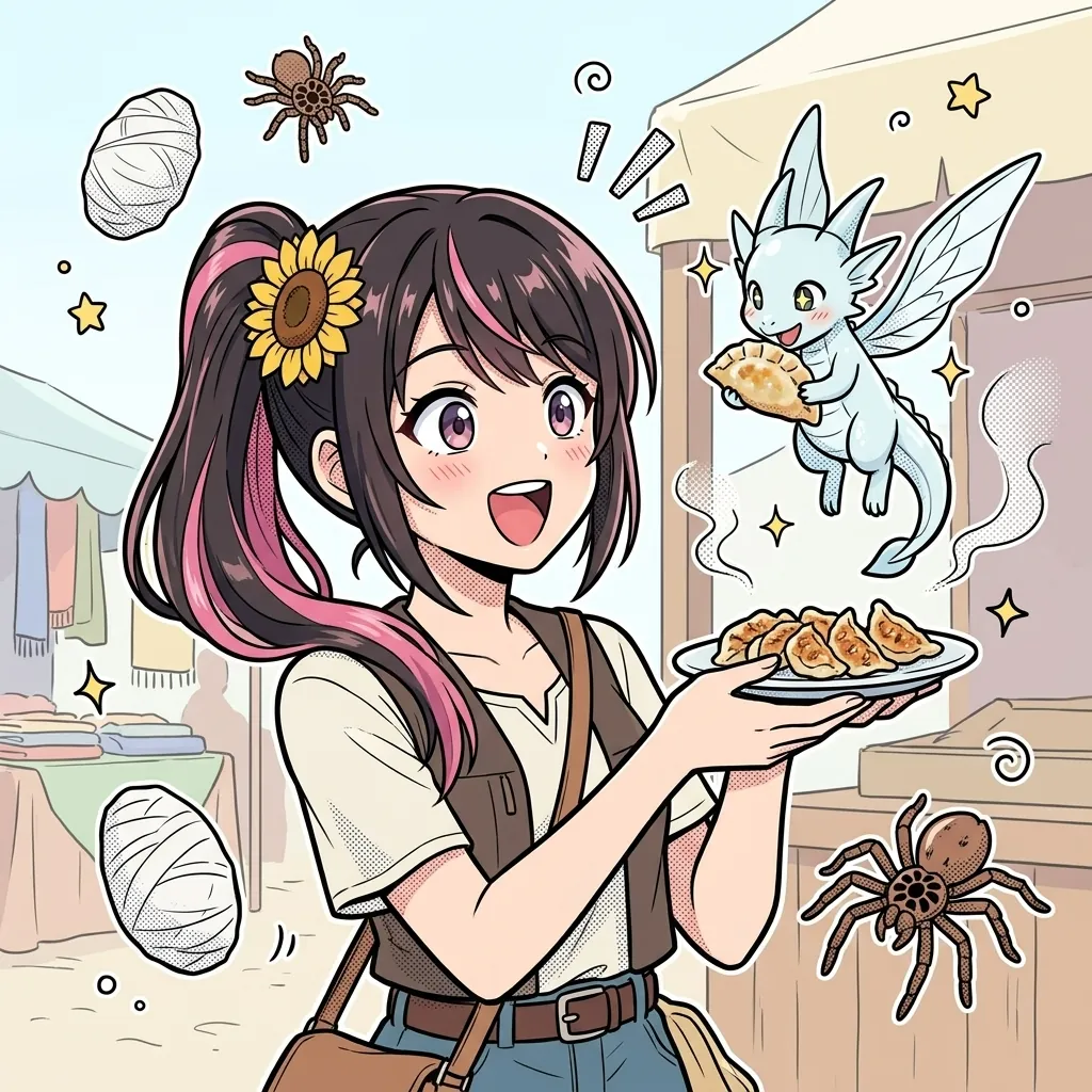 オークジェネラルの肉で餃子を作る発想がもう最高だよね。危険な魔物を倒した直後なのに、画面の中心が戦利品じゃなくて「何を作ったらおいしいか」に移っていくのがムコーダさんらしい。しかも、その香りに釣られてピクシードラゴンが飛び込んでくる流れが楽しいんだ。戦闘ではなく食卓で縁が生まれるところに、この作品のやさしい芯があると思う。