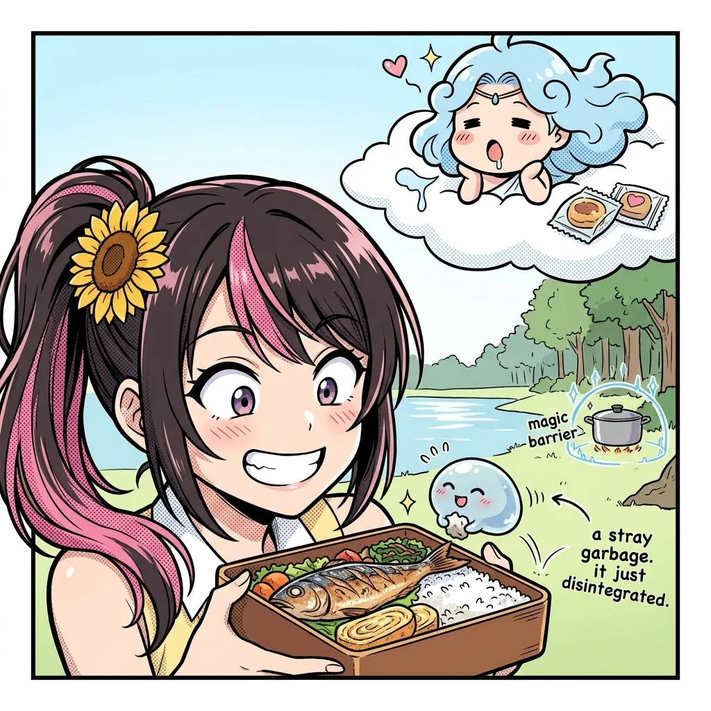 そして後半!神界から降臨しちゃう風の女神ニンリル様、食いしん坊すぎて最高じゃない!?神様なのに、お菓子の誘惑には勝てないとか可愛すぎでしょ!「お菓子定期便」を条件に加護を授ける取引も、結局は食べたかっただけじゃん!っていう。ムコーダさんのご飯、神様をも虜にするレベルとか本当にお店開けるよ!
